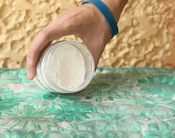 2. Baking soda works well to eliminate surface (but not deeply penetrated) odors. Dampen the area with clean water and then sprinkle baking soda over it. Rub the baking soda into the soiled area and let dry. Brush or vacuum to remove the dry material.