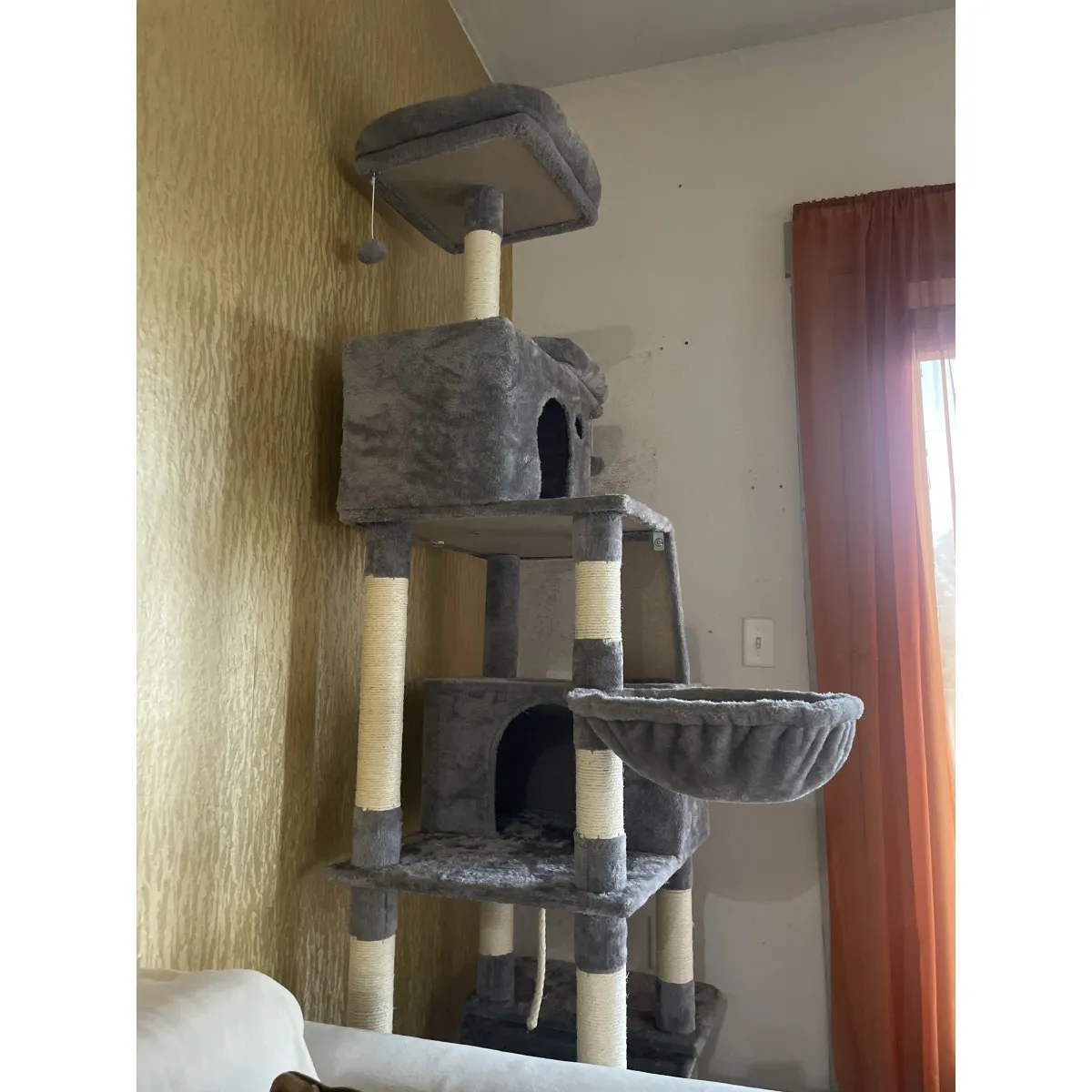 Large, sturdy cat tree with plenty of places for kitties to climb, jump, and sharpen claws.