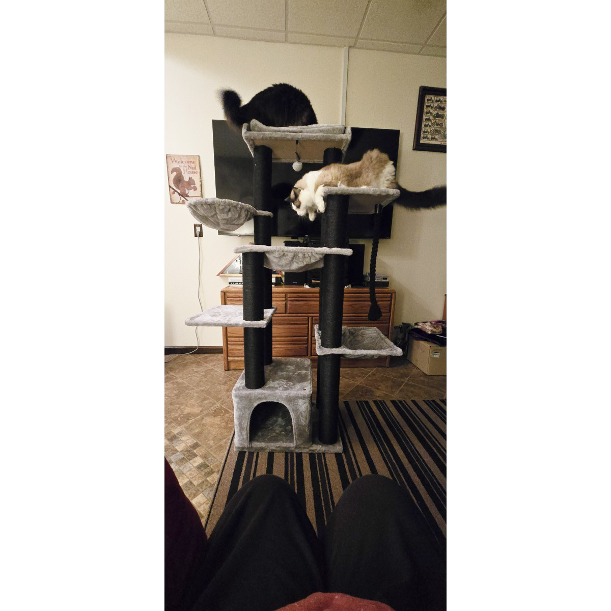 Designed with the large kitties in mind, this is a great cat condo for Maine Coons. This gentle breed is well known for its playful and curious nature, and will take to this heavy-duty cat furniture quickly. Maine Coons and the other large breeds will adore the large bed at the top and the roomy hideaway on the ground level when it's time for sleep. There are also two large hammocks, one just over the hideaway and the other in the middle of the cat tree, each large enough to accommodate a big cat and lined with soft, plush material. Add the 13.8" hanging basket, and this item will present a feast of fun and leisure for any feline! If you don’t like the color, check the same cat condo in other colors here.