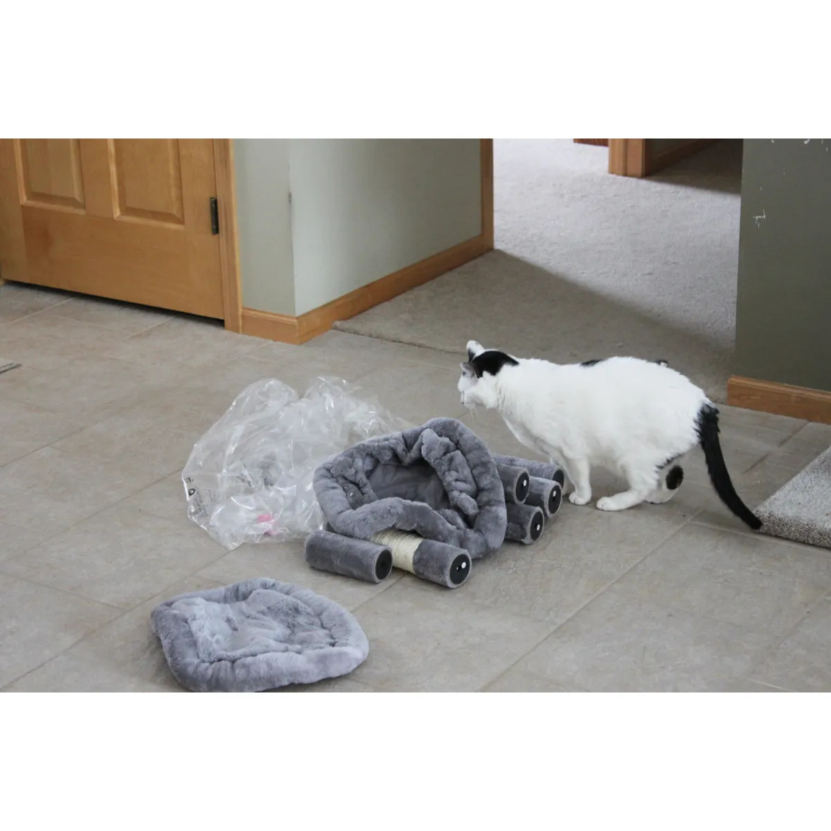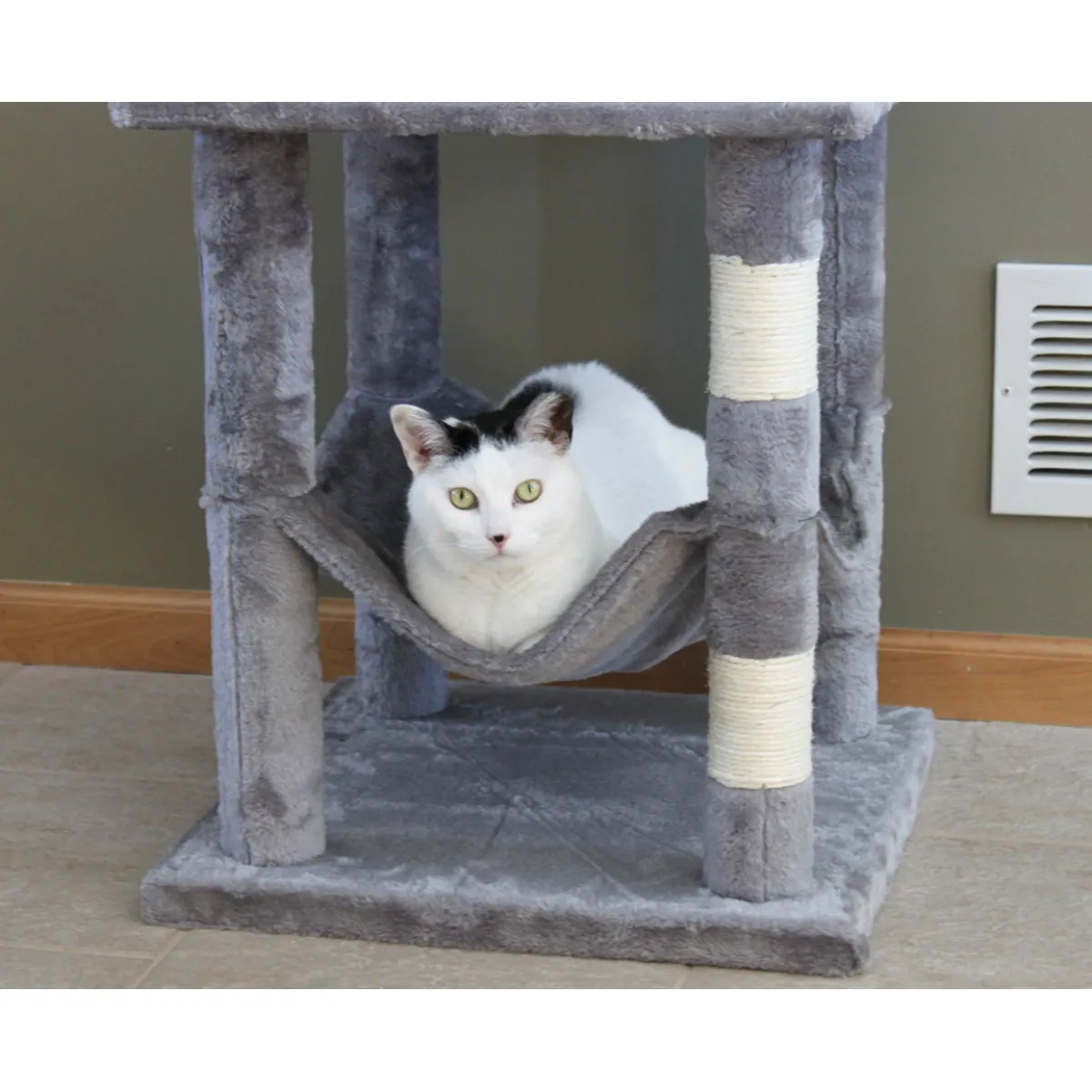 There is no need to take your pet to a kitty amusement park when this cat tree with a hammock brings the same feeling right into your home! Built for small to medium-sized cats, it features a magnificent design with a base of CARB-certified engineered wood and a neutral gray color scheme that looks fabulous in any decor. You'll also love that the antibiotic fabric is easy to maintain as well as safe for your furry friends. And with multiple sisal-wrapped posts, there's less need to worry about cat scratching up your regular furniture!