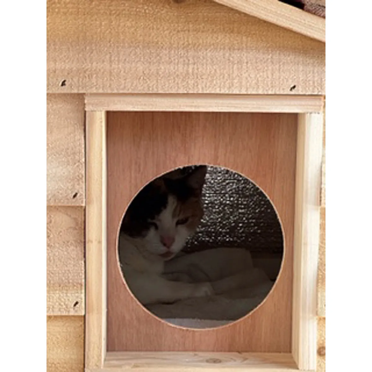 Round Door Insert: If your cat likes to squeeze through holes in fences or find an isolated corner to curl up in, she may enjoy this round door style. The insert has a 6" round opening and may be easily removed if the cat is too big to fit through it or just does not like it.